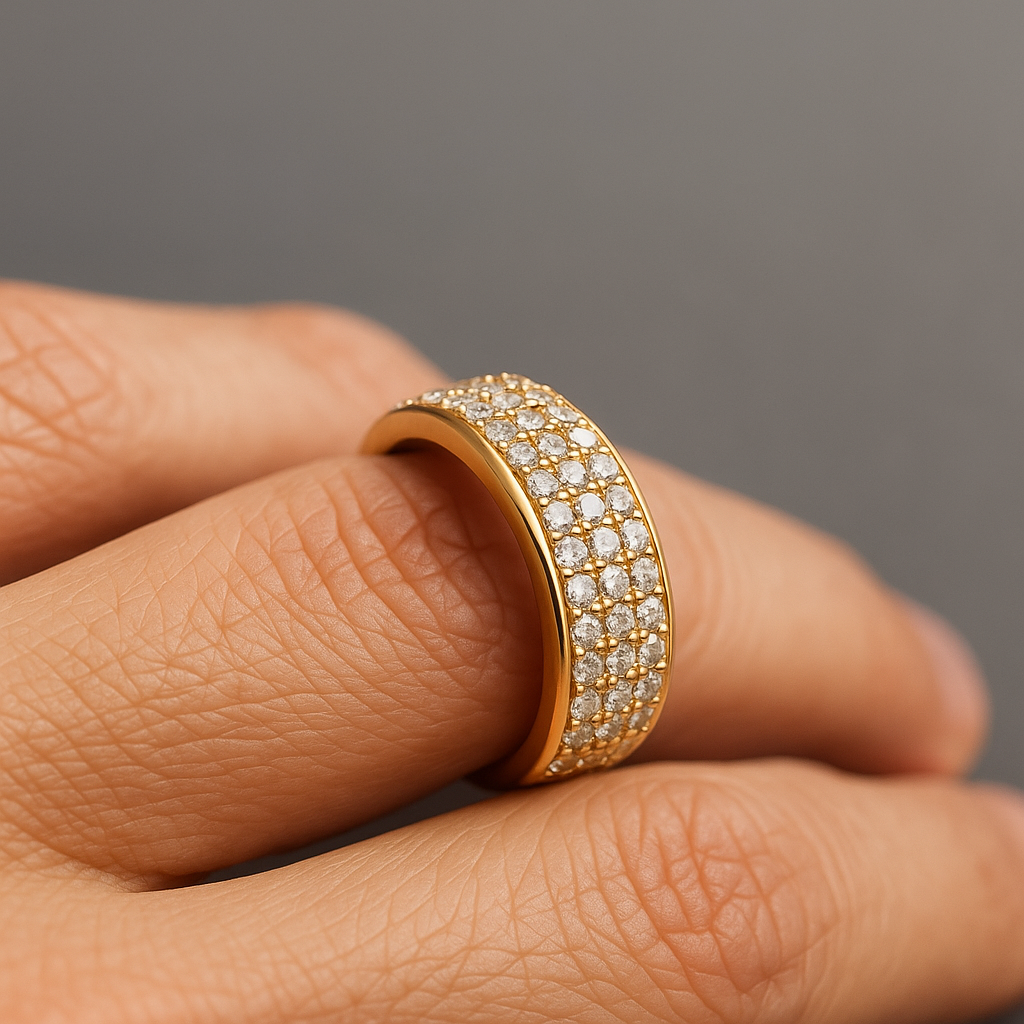 ANEL MEIA ALIANÇA OU APARADOR CRAVEJADO DE MICRO ZIRCONIAS EM BANHO DE OURO - ARO 17/18