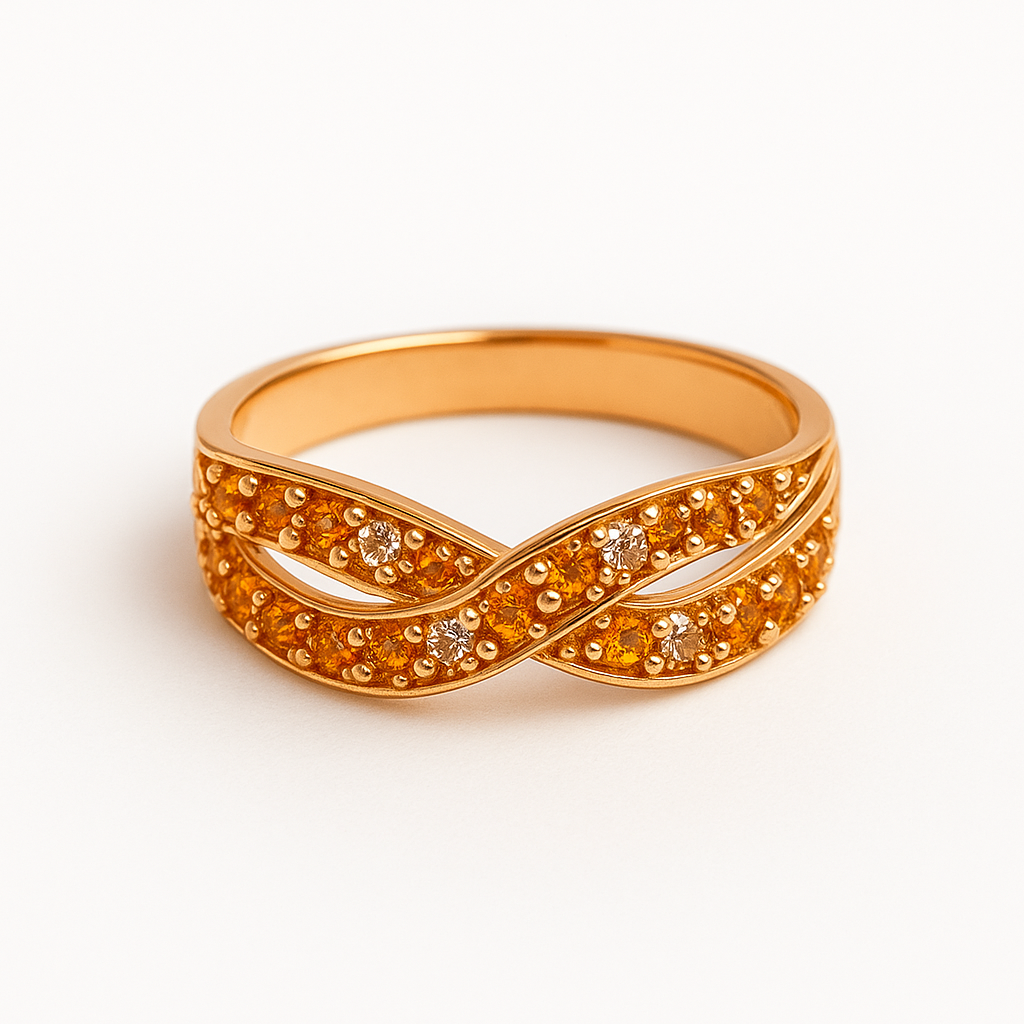 ANEL TRANÇADO COM MINI ESTRELINHAS DE ZIRCONIAS EM BANHO DE OURO