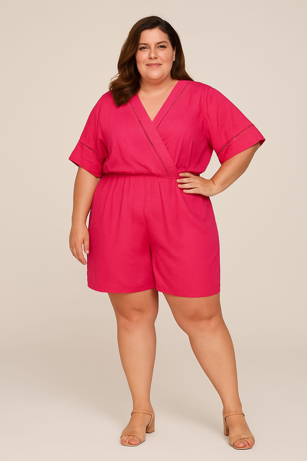 MACACÃO CURTO FEMININO PLUS SIZE EM VISCOSE PINK