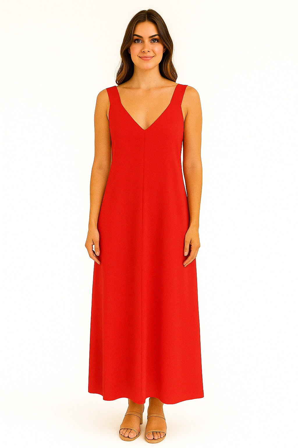 VESTIDO LONGO ALÇA LARGA COM FENDA NA FRENTE VERMELHO